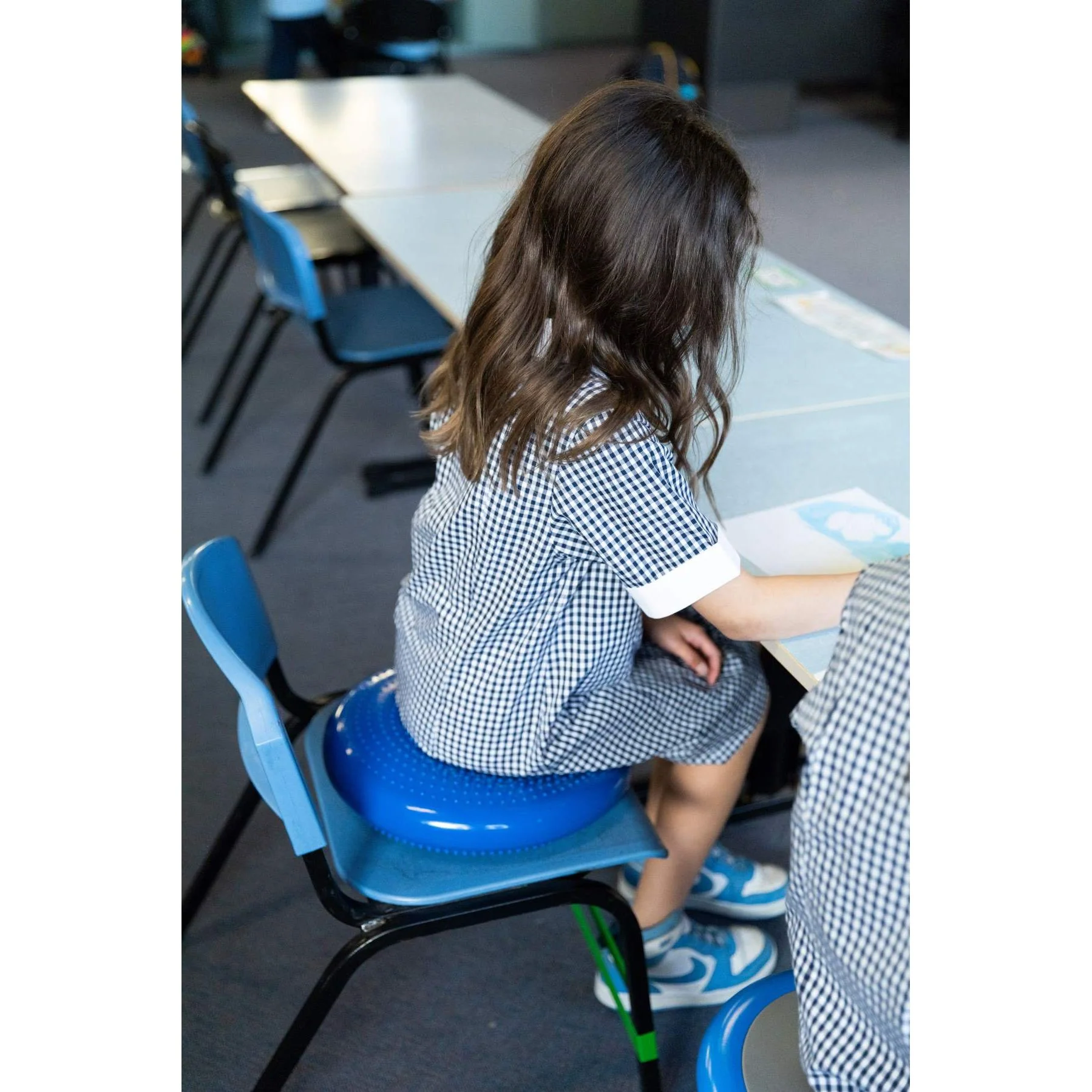 It encourages gentle active movement, helping improve focus, posture, balance and core strength while keeping children engaged during learning, meals or therapy sessions.